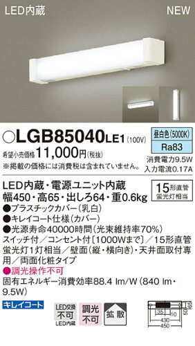 【最安値挑戦中!最大22倍】パナソニック LGB85040LE1 キッチンライト 天井直付型・壁直付型 LED(昼白色) 15形直管蛍光灯1灯相当 ランプ同梱包 [∽]